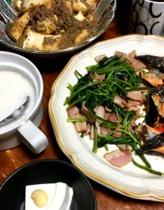 作者: 投稿日: カテゴリー: 未分類 さて、昨日の晩御飯は… 白米 冷奴(生姜のすりおろし付) 隠元豆と豚肉の炒め物 隠元豆の胡麻和え カニかまのサラダ コロッケ 肉じゃが ~~ん?まぁ彩りある食卓じゃった。 そこを踏まえて今夜の晩御飯を画策。 五穀米 山芋すりおろし 冷奴(賞味期限が本日なので連ちゃん勘弁な) ほうれん草とベーコンの炒め物 豚ひき肉と厚揚げの味噌煮込み 鮭の塩焼き 6/12 夕餉 明日は玉ねぎの味噌汁のみ決定しているのだが・・・さてさて。 晩御飯を呟く 投稿ナビゲーション sakura さくら今日の青